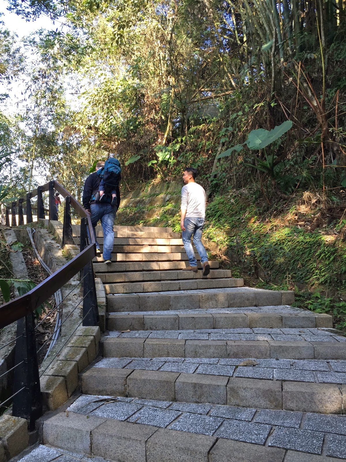 When we were driving in I had seen a Pagoda way up in the mountains and really wanted to check it out. We loaded back into the car and started driving up the mountain. It was a pretty narrow road and their were LOTS of people riding rented bikes up road. These were not experienced cyclists getting their exercise, these were just average people making their way to the top. With drop offs on both sides of the road I thought they were nuts! We wound around until we found where you parked to walk to the pagoda. Since the tour buses could not drive to this spot it was not crowded at all. We loaded Zane into the backpack and started up the hill. It was 239 steps to the top with pathway between those steps. It was a beautiful climb with lots of vegetation to provide shade.